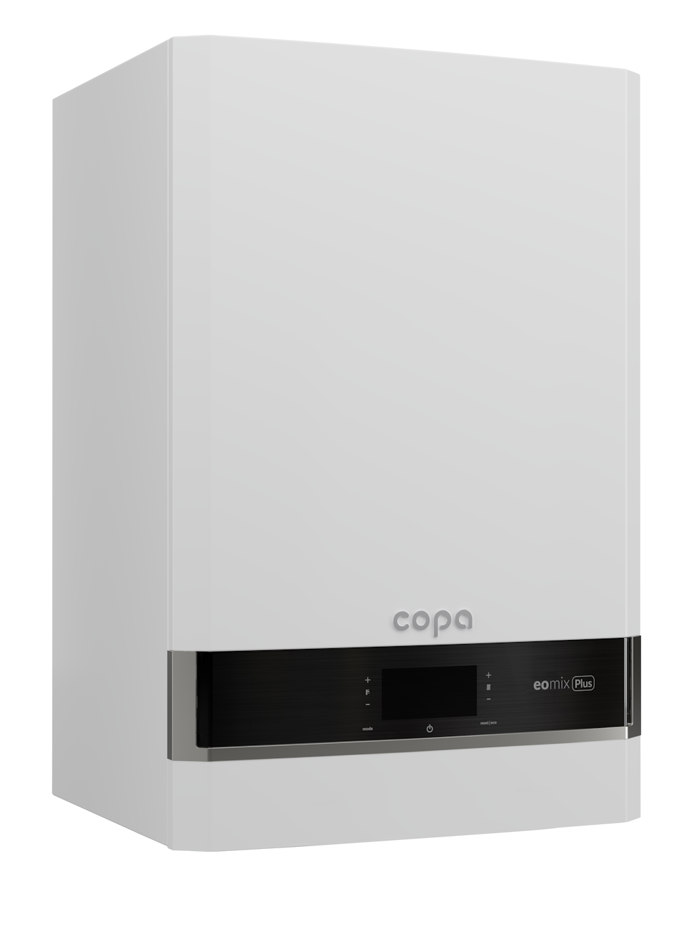 Газовые конденсационные одноконтурные котлы Copa серии Eomix Plus отличаются высокой эффективностью и надежностью. Благодаря высокому нормативному КПД 97,8 % и наличию энергоэффективной модулируемой цилиндрической горелки с диапазоном модуляции от 17 до 100%, Eomix Plus расходует очень мало газа и обеспечивает минимальный объем выбросов. Котел готов к монтажу «из коробки» без дополнительной обвязки, поскольку мембранный расширительный бак и энергоэффективный циркуляционный насос уже встроены.