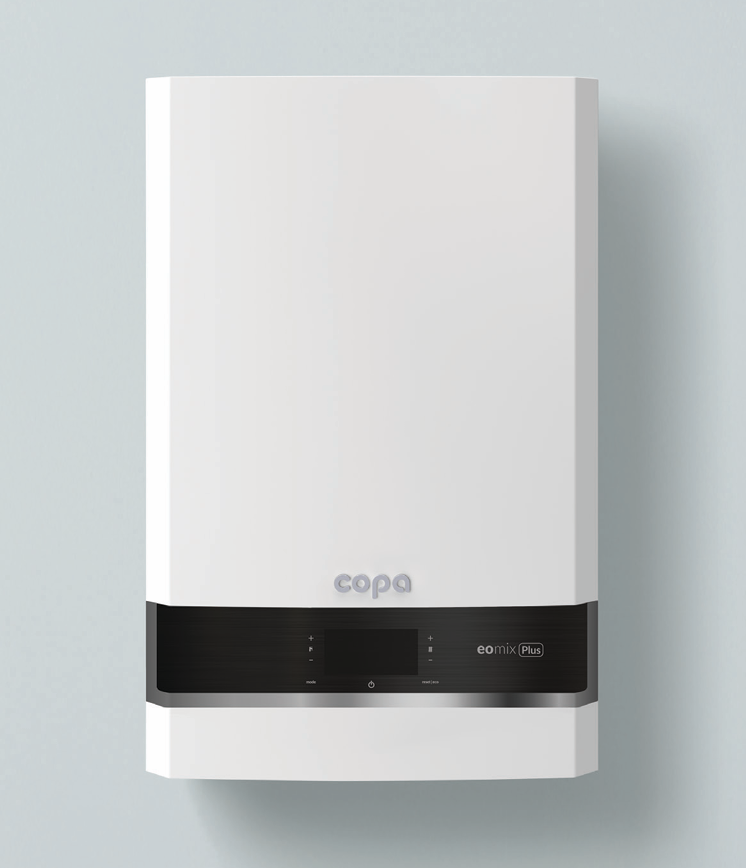 Газовые конденсационные двухконтурные котлы Copa серии Eomix Plus отличаются высокой эффективностью и надежностью. Благодаря высокому нормативному КПД 97,8 % и наличию энергоэффективной модулируемой цилиндрической горелки с диапазоном модуляции от 17 до 100%, Eomix Plus расходует очень мало газа и обеспечивает минимальный объем выбросов. Котел готов к монтажу «из коробки» без дополнительной обвязки, поскольку мембранный расширительный бак и энергоэффективный циркуляционный насос уже встроены.