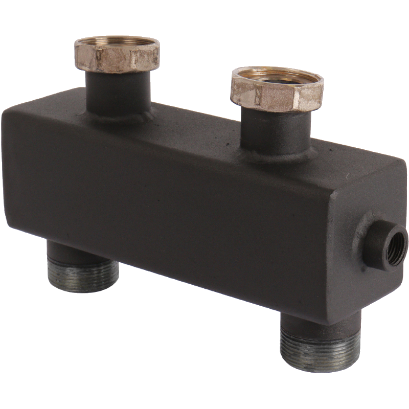 Гидравлический разделитель ROMMER RDG-0015 с накидными гайками и отводами под воздушный клапан и грязевик